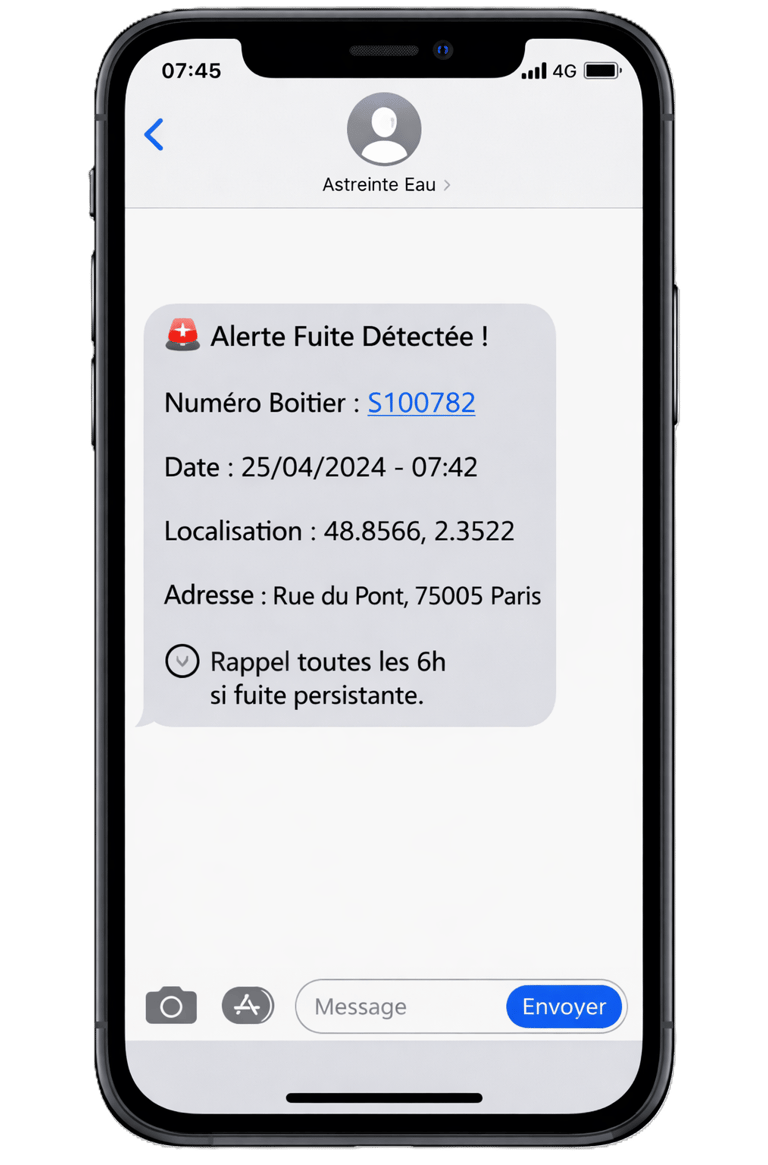 Sentinel One est un boitier connecté qui assure une surveillance acoustique continue de vos réseaux 24/7 et alerte vos équipes d'astreinte par SMS dès l'apparition d'une anomalie, avec une précision GPS immédiate.